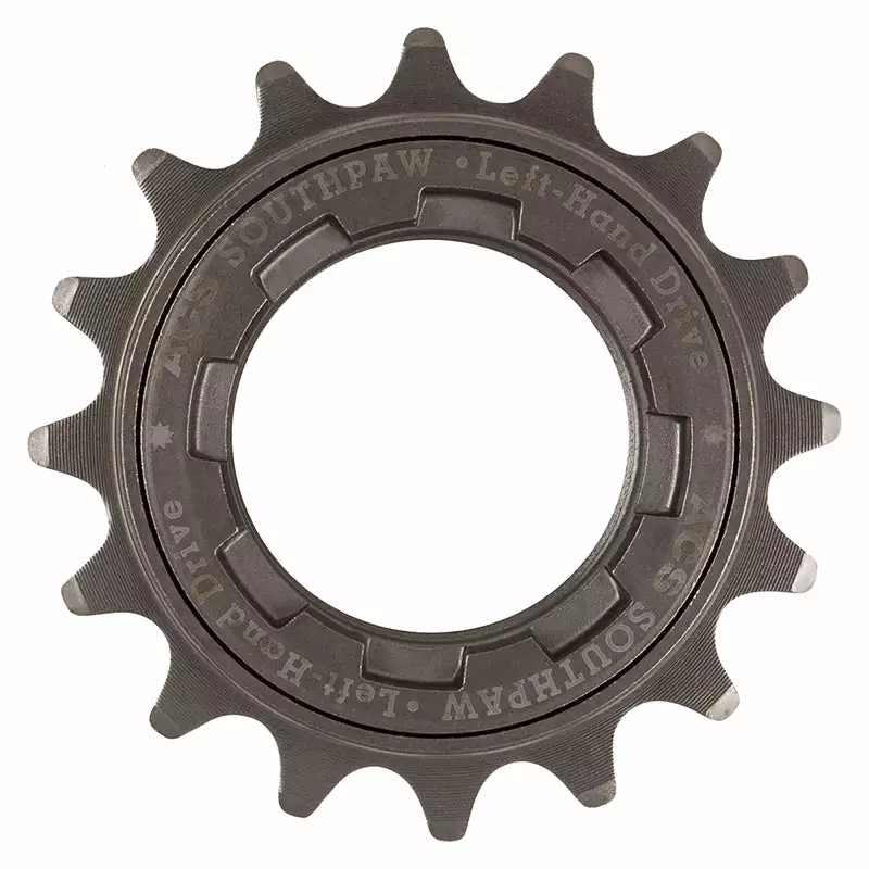 ACS Southpaw Freewheel. These freewheels are designed to be used with left-hand threaded hubs for left-side drivetrains.