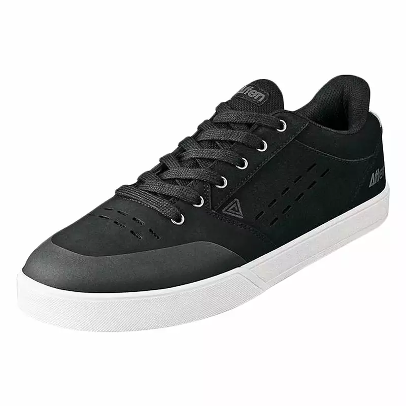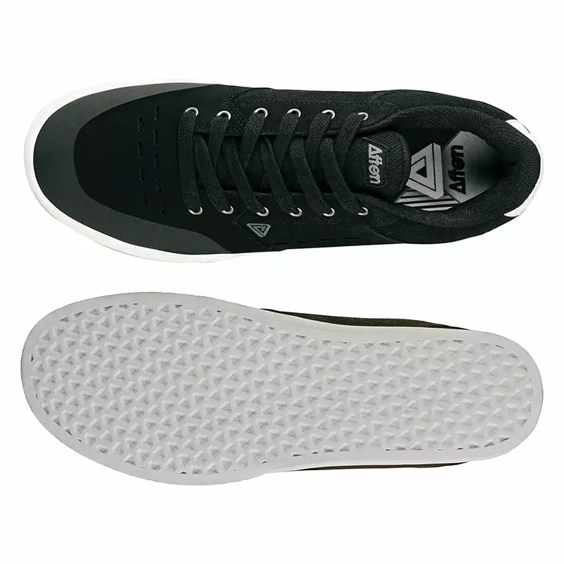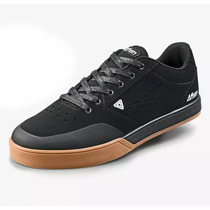 Outsole constructed specifically to interface with a flat pedal yet provide traction when climbing and descending hills off the bike