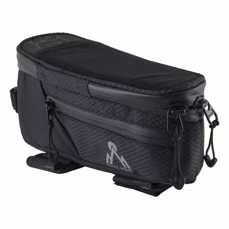 The Macropod top tube bag features durable 210D diamond lattice polyester and a water resistant zipper for putting up with the abuse of frequent use