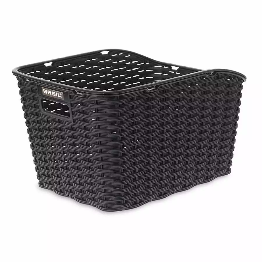 Basil Weave WP Rear Bike Basket. Synthetic rear basket, weatherproof. Basket is placed lengthwise on luggage carrier. Mounting system included (Permanent mount)