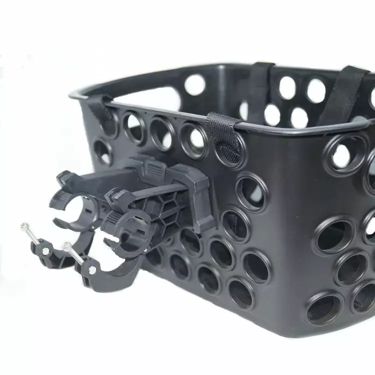 Bikase Bessie Molded Front QR Basket is Thermoplastic Urethane (TPU) construction. Features quick release mechanism. Front basket easily attaches to handlebars with a simple to use mounting system. Handlebar mount included. Removable Velcro carrying handles.
