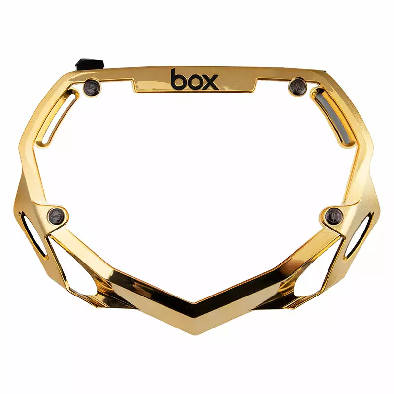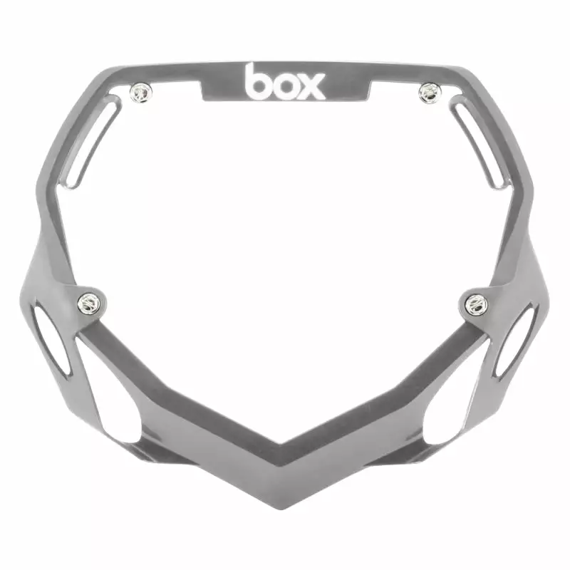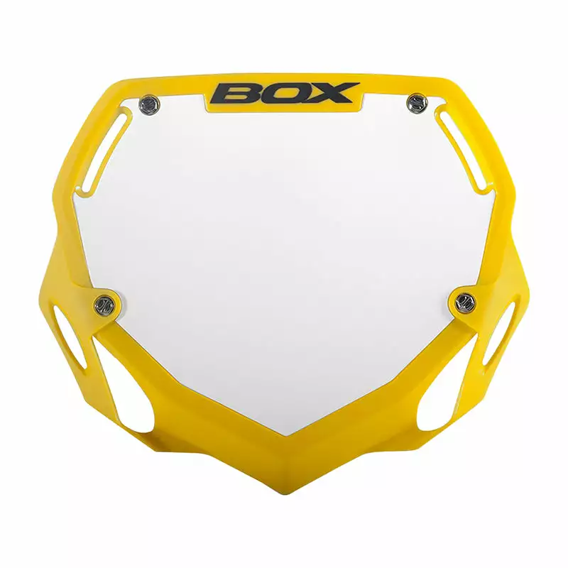 BOX Two Phase 1 Number Plate. Features color-fast, 3D injection molding. Includes hook-and-loop closures secured with BOX rivets. Airflow ports improve aerodynamics, reduce weight and add style.