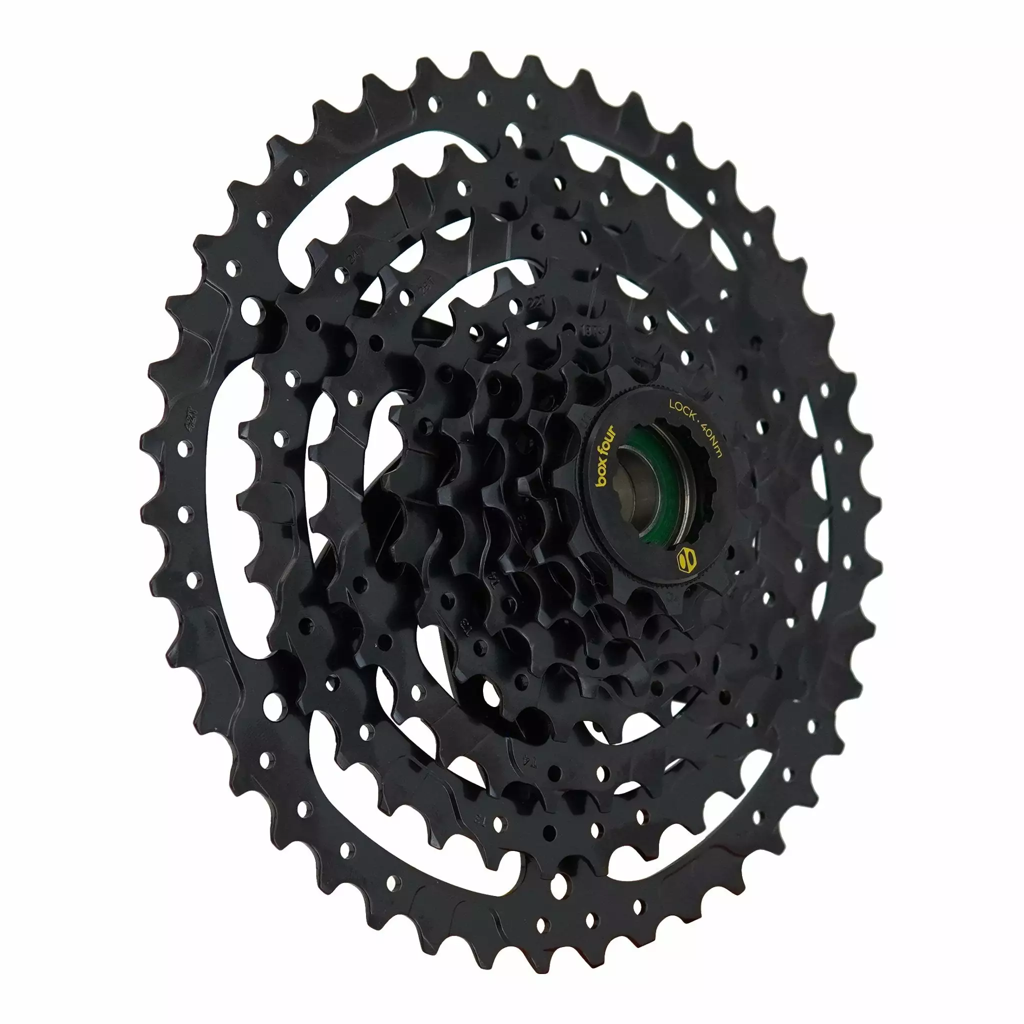 The Box Four 8-Speed E-Bike Cassette offers high gears with more teeth to withstand the rigors of modern E-Bike riding. Adding an extra tooth to each of the three highest gears provides increased durability and decreased wear by distributing the load over a larger area! Box Four adapts our Prime 9 philosophy of durability, simplicity, and reliability at a great price point. All cogs are stamped from steel, given our durable black coating and then the larger cogs are pinned to each other with spacers for easy installation.