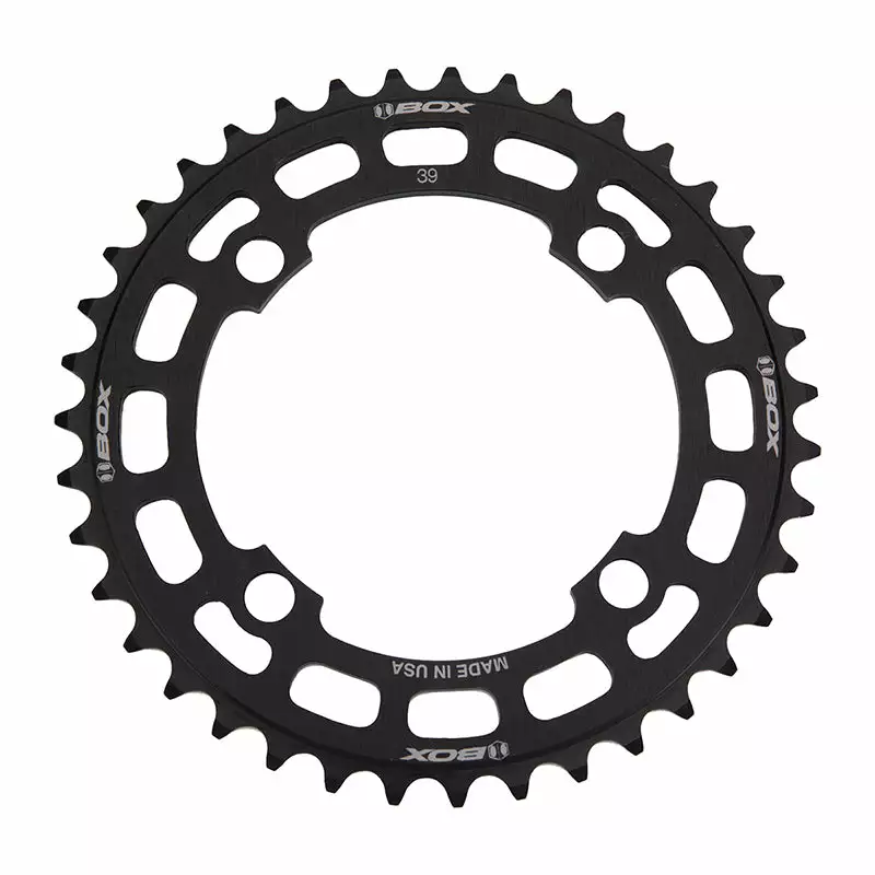 BOX Componentsย Two 6061-T6 Cosine Single Speed Chainring. Made in the U.S. from 6061-T6 aluminum alloy. Round and true with laser etched graphics.