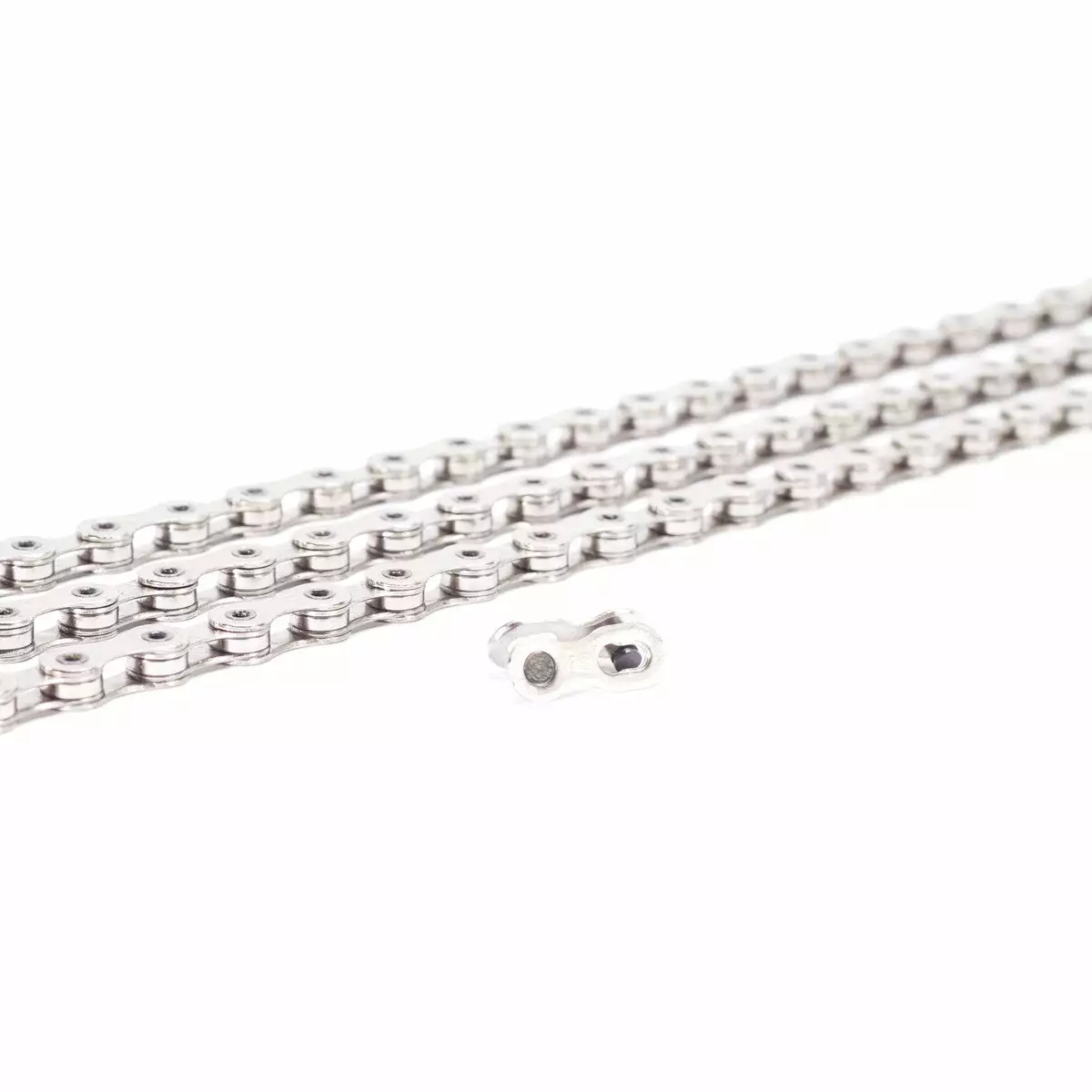 BOX Components Box One 11 Speed Hollow Pin Chain with 126 Links. Heat treated alloy steel. Solid inner and outer plates, Hollow pins, Nickel plated finish.