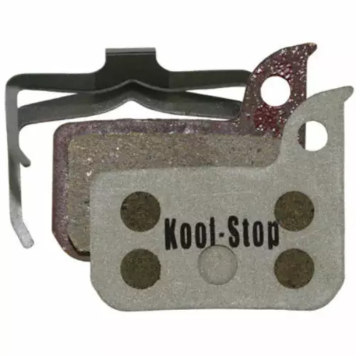 Kool-Stop disc pads are made with organic materials that are blended and bound together using a resin. Kool-Stop disc pads are Rotor Friendly and provide high performance braking throughout the life of the pad.
