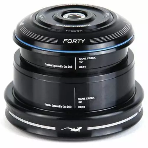 Cane Creek 40 Series Complete Headset Black Tapered ZS44 /28.6 EC49/40 ZS (Zero Stack) Top. EC (External Cup) Bottom Cup. This is a complete headset. Black anodized.