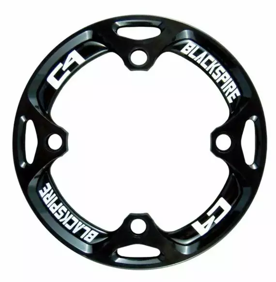 Polycarbonate, Lexan, Thermoplastic alloy?, Makrolon, TuffMa…It’s all plastic no matter what you call it!! The Blackspire C4 Ring God Bash Guard is heavier than aluminum bashrings and nowhere near as strong. But it looks cool hanging out in front of the Starbucks! And the Blackspire C4 Ring God Bash Guard slides over rocks and logs like butter! 3/8” Thick. Includes 16mm Chainring bolts. Molded Graphics.
