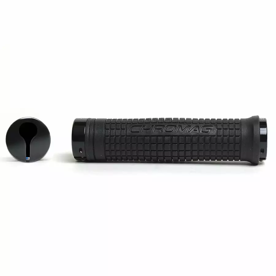 Chromag Squarewave XL Lock On Grips w/Clamps 150mm. The Squarewave XL has the same shape as the Squarewave grip, but with a wider diameter. The XL features a one-side flange that can be oriented to either inside or outside of the barSplit-Teardrop end clamp effectively covers the bar end while utilizing a pinch-clamp for the best purchase. Overall length 150mm.