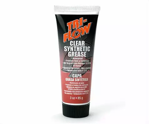 The Tri Flow Synthetic Grease is a premium quality, extreme pressure, non-melting, waterproof formula that seals out water contaminants. It is available in handy squeeze tube for easy application and fits nicely in a grease gun. The Tri Flow Synthetic Grease is compatible with most rubbers and plastic and stands up to extreme temperatures (-10° – +400° F). Guaranteed to optimize the performance of your equipment’s moving parts, such as bearings and tracks, and will allow them to last longer and run quieter and smoother. Prevents rusting even when exposed to salt water! Formulated with P.T.F.E.