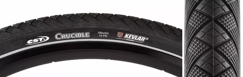 CST Crucible C1769 Tire Wire Beadย 700c 60 TPI is A carefully and uniquely designed city/commuter bicycle tire. Kevlar Inside puncture protection. Reflective sidewall. Withstands even the toughest conditions.
