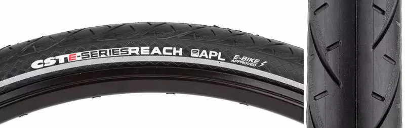 The CST E-Series Reach is the perfect tire for any E-Bike. The E-Series Reach is E-Bike certified up to 50 km/hr (31 mph), and comes equipped with APL, and a reflective sidewall for increased night visibility