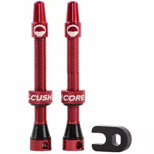 CushCore 2 Air Tubeless Valves Set specially designed to work with a CushCore insert CNC machined 6061-T6 aluminum. Removable valve core. Locknut with o-ring seal and valve cap included. Sold in Pairs.
