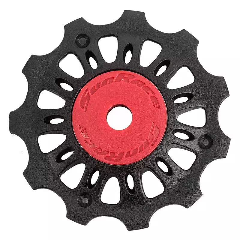 SunRace SP856 Rear Derailleur Pulley 11T. Non floating replacement pulley, works at upper or lower. Sealed bearing, resin composite construction