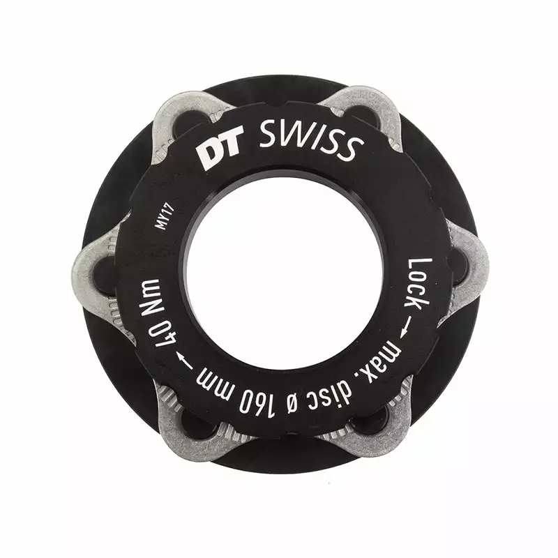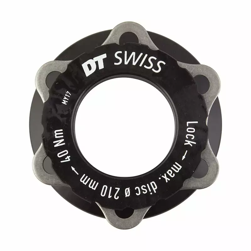 DT Swiss disc adapter for using a 6 bolt rotor with CenterLock hubs