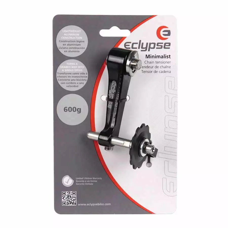 Eclypse Single Guy Minimalist Chain Tensioner.Turn your bike into a single-speed. Mounts on derailleur hanger. Lightweight alloy. Adjustable chainline.