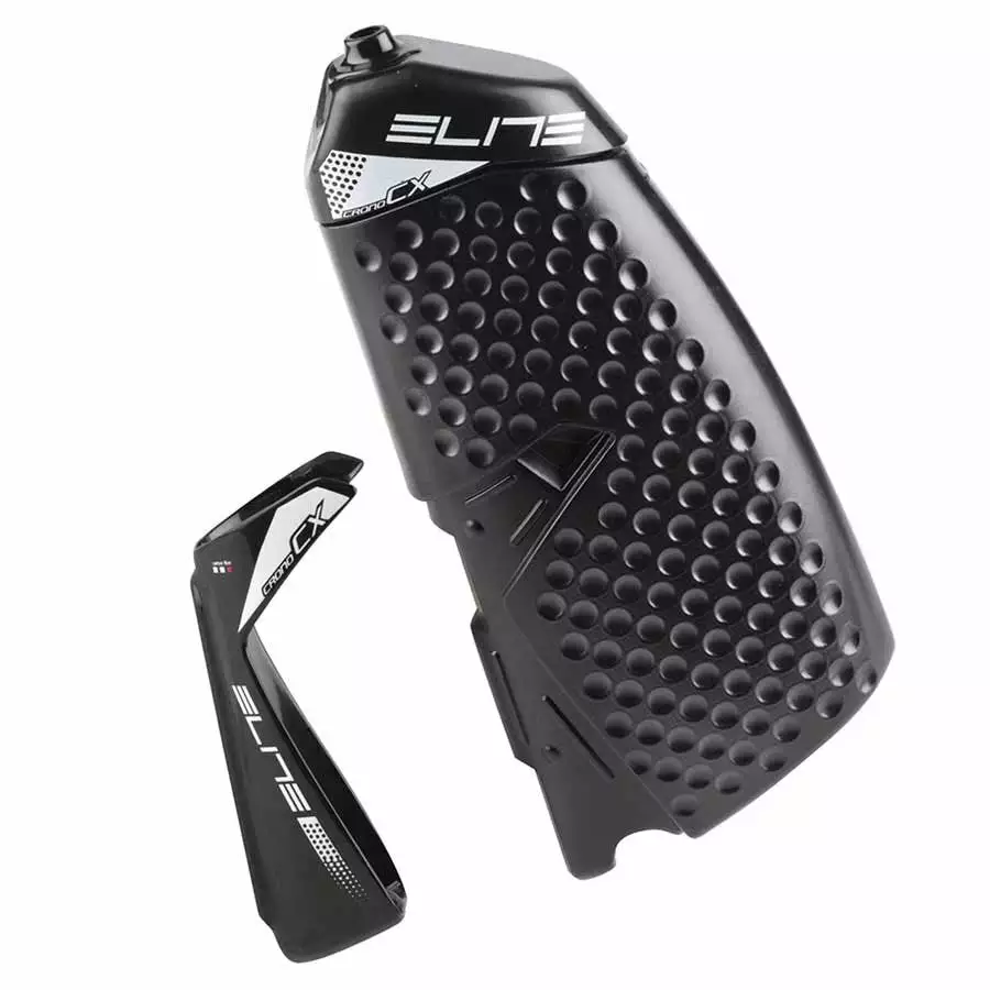 Elite Crono CX Kit Water Bottle + Carbon Cage. Aerodynamic bottle and cage designed and tested in a wind tunnel. Bottle cage is monocoque carbon fiber