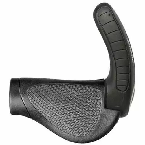 The Ergon GP3 Performance Comfort Grips now available in a GripShift lenght for grip shift shifters. Both grips are shortened to allow for twist shifters. The GP3-L Grip Shift features a composite 3-finger bar end with anti-slip rubber inserts. Its size and shape are ideal for small to medium sized hands (Size S: 6.5 – 8.5) as well as for medium to larger sized hands (Size L: 8.5 – 10.5). The bar end and the Ergon GP3 Performance Comfort Grip platform can be independently adjusted for the correct support angle and provides the perfect fit for your individual riding style. The size difference is in the diameter of the grip. The reason for this is that a larger hand is better able to grip a larger grip with less stress and effort. This is the same in reverse for small grip. A smaller hand needs a smaller grip to allow the hand to close around it. Of course, this is all also down to personal preference.