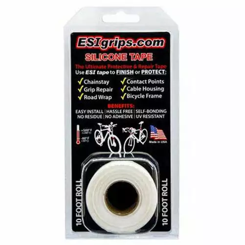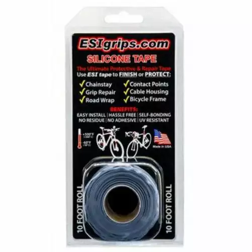 The ESI Mechanics Finishing Roll Silicone Tape protects your bike! There are countless ways of using ESI silicone tape. Makes a great chain stay protector! wrap it under mounts to keep your lights, camera, GPS from rotating, and scratching your bars. Some other great uses include, tool handles, finishing tape, and protecting wear points on your frame. The possibilities of using the ESI finishing tape are endless. With 10 ft in a roll you can get numerous chainstay protectors, and custom tape jobs at a great value.ย Sold Individually.