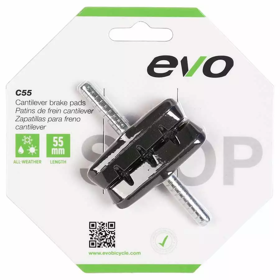 EVO C55 CantiLever Brake Pads. Durable all-weather stopping compound. 55mm cantilever brake pad length. Threadless Center post design. Cantilever brake compatible.