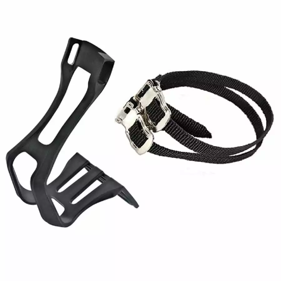 EVO E-Sport Toe Clips & Straps Pair. Large Resin toe clip with nylon strap system. For road, hybrid or mountain pedal use. Fits most pedals that allow toe clip mounting.