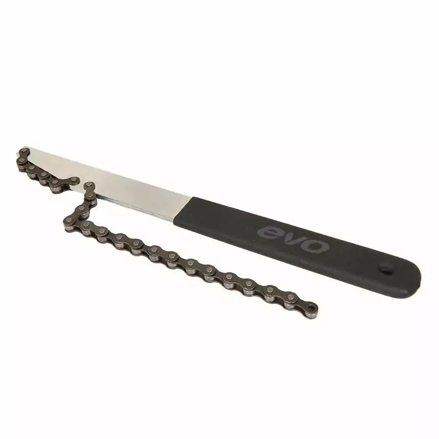 Evo EV-CW-1 Chain Whip Cassette Remover Tool. The Evo Premium Cassette & freewheel removal, and installation chain whip tool. Works on 5 through 10-speed rear cassettes, as well as 7, 8, 9, and 10 cog systems. The Evo chain whip also features Padded rubber handle for added comfort