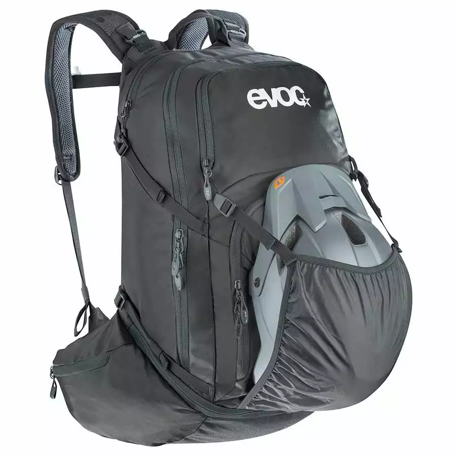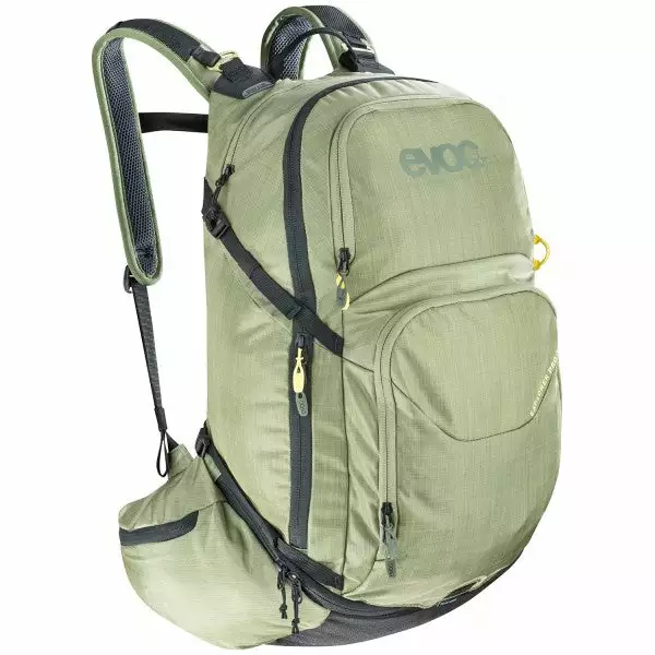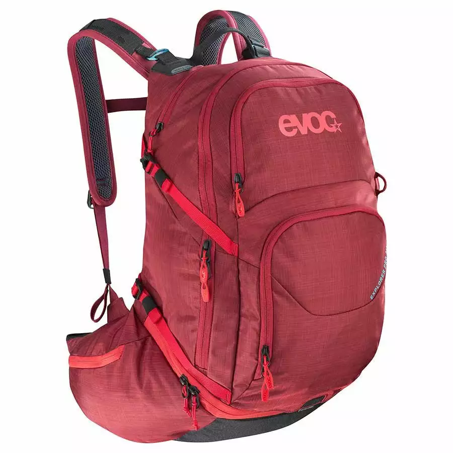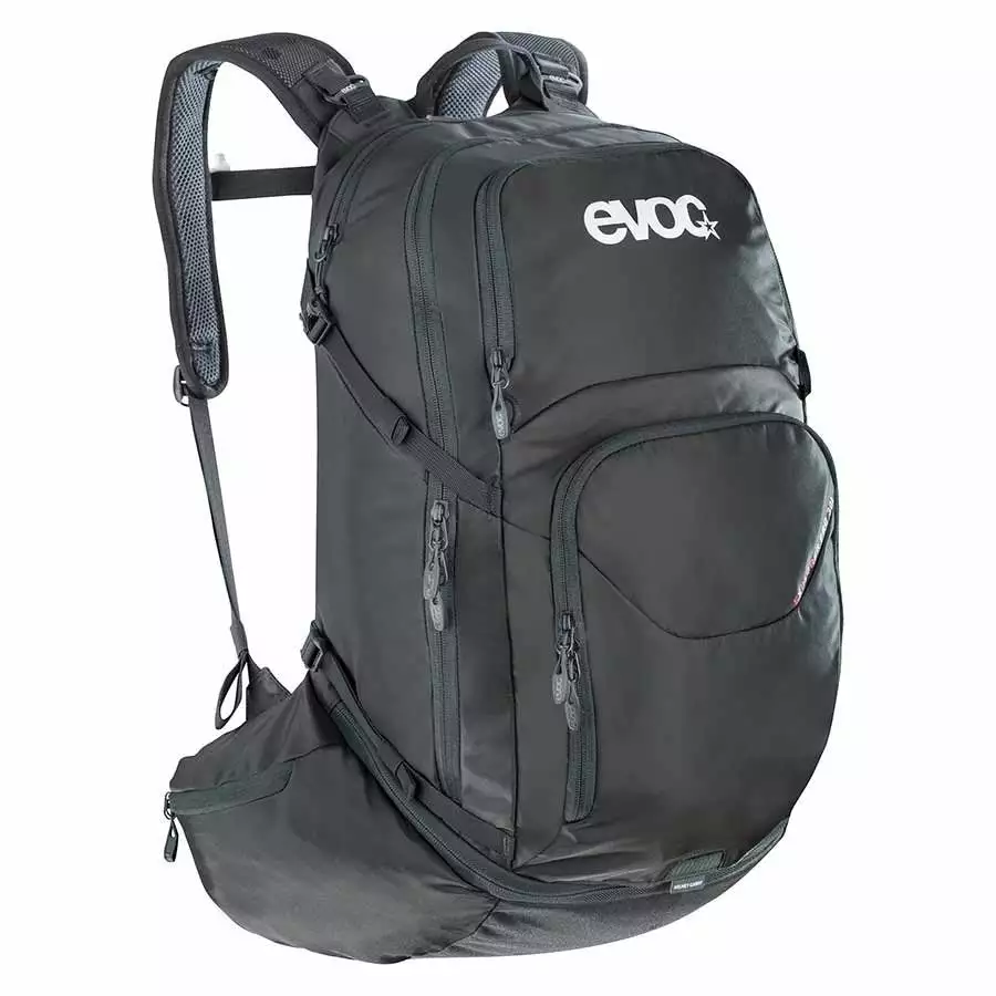 The Evoc Explorer Pro Backpackย is a versatile bike touring backpack for unlimited bike adventures. With enough room for storage and a dialed compartment management everything youd need on tour has its space, exactly where you need it. The AIR FLOW CONTACT SYSTEM of the bike backpack offers an outstanding carrying comfort through maximum back ventilation and absolute load neutrality.