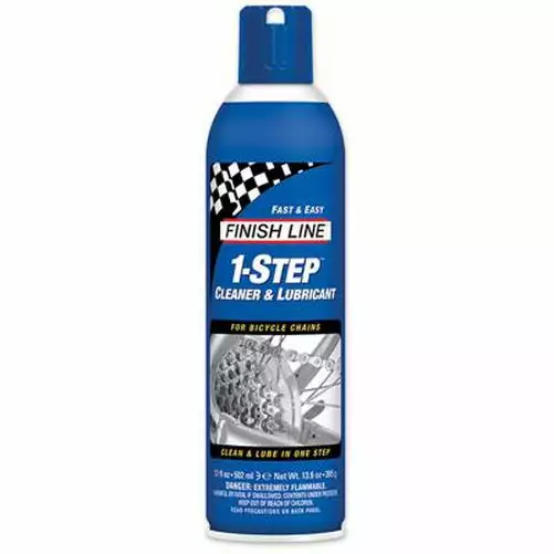The Finish Line 1 Step Cleaner & Lube is engineered for commuters and recreational cyclists who seek a quick one-step ”clean and lube” formulation. As 1-Step loosens and removes surface grime, it delivers a clean low friction film of lubricant. The Finish Line 1 Step Cleaner & Lube prevents premature component wear while reducing pedaling friction and drive-train noise. 1-Step is also formulated to provide maximum rust protection. Finish Line 1 Step Cleaner & Lube is an extremely effective performance-enhancing bicycle maintenance product.