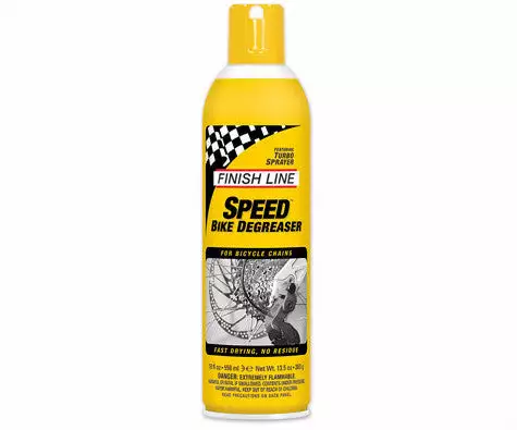 The Finish Line Speed Clean Degreaser features super fast cleaning power. Instantly removes grease, grime and even brake glaze – then evaporates. No oily residues! No water rinsing! Great for Brake rotors, internal derailleur pivots, cog sets, chains, and any other part that needs that needs a thorough cleaning and that you want left ‘squeaky-dry’ clean. Finish Line Speed Clean Degreaser’s amazingly low surface tension will drive out and displace any moisture or water- perfectto clean up parts after a wet, gritty ride. Finish Line Speed Clean Degreaser. 18 fl. oz.