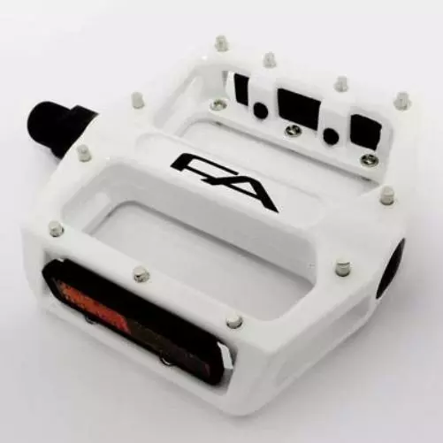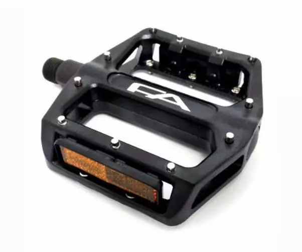 Free Agent Pro Alloy Platform Pedals w/ Removable Pins are A world class pedal manufacturer who makes products for many of the more fashionable names. With the Free Agent Pro Alloy Platform Pedals you’re getting a top spec product for a bargain price. The Free Agent Pro Alloy Platform Pedals feature an Aluminum body, cromoly spindle, ball bearings and the 11 studs per side provide superb grip. The Free Agent Pro Alloy Platform Pedals also includes removable reflectors.