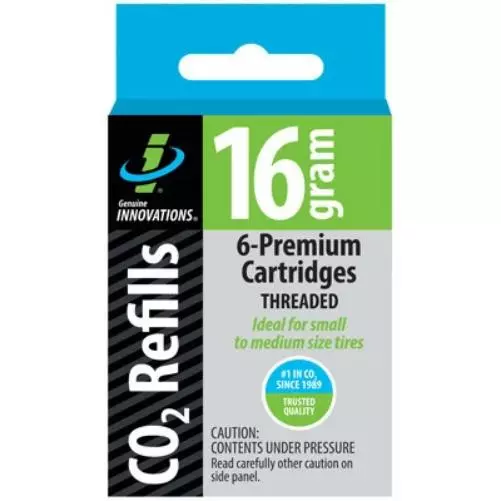 Genuine Innovations C02 cartridges; 16 grams is one of our most popular size in CO2 cartridges. Perfect for Mountain and Road bike tyres.