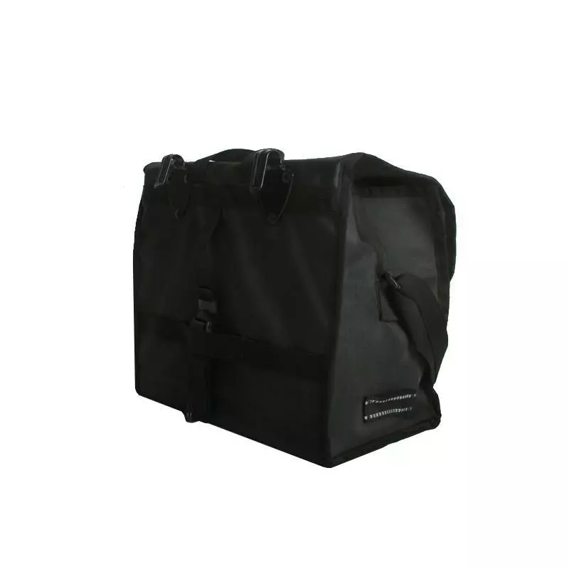 The Dutchy pannier is an easy access trunk for your bicycle. Modeled from the proven Dutch-style bike panniers, these bags will turn your bike into a hauling machine. This pannier incorporates a universal mount system that easily fits any rack. When you reach your destination, the bags can be removed and used as totes to transport your belongings with a haul handle or a shoulder strap. They are made from upcycled billboards and banners from all over the United States.