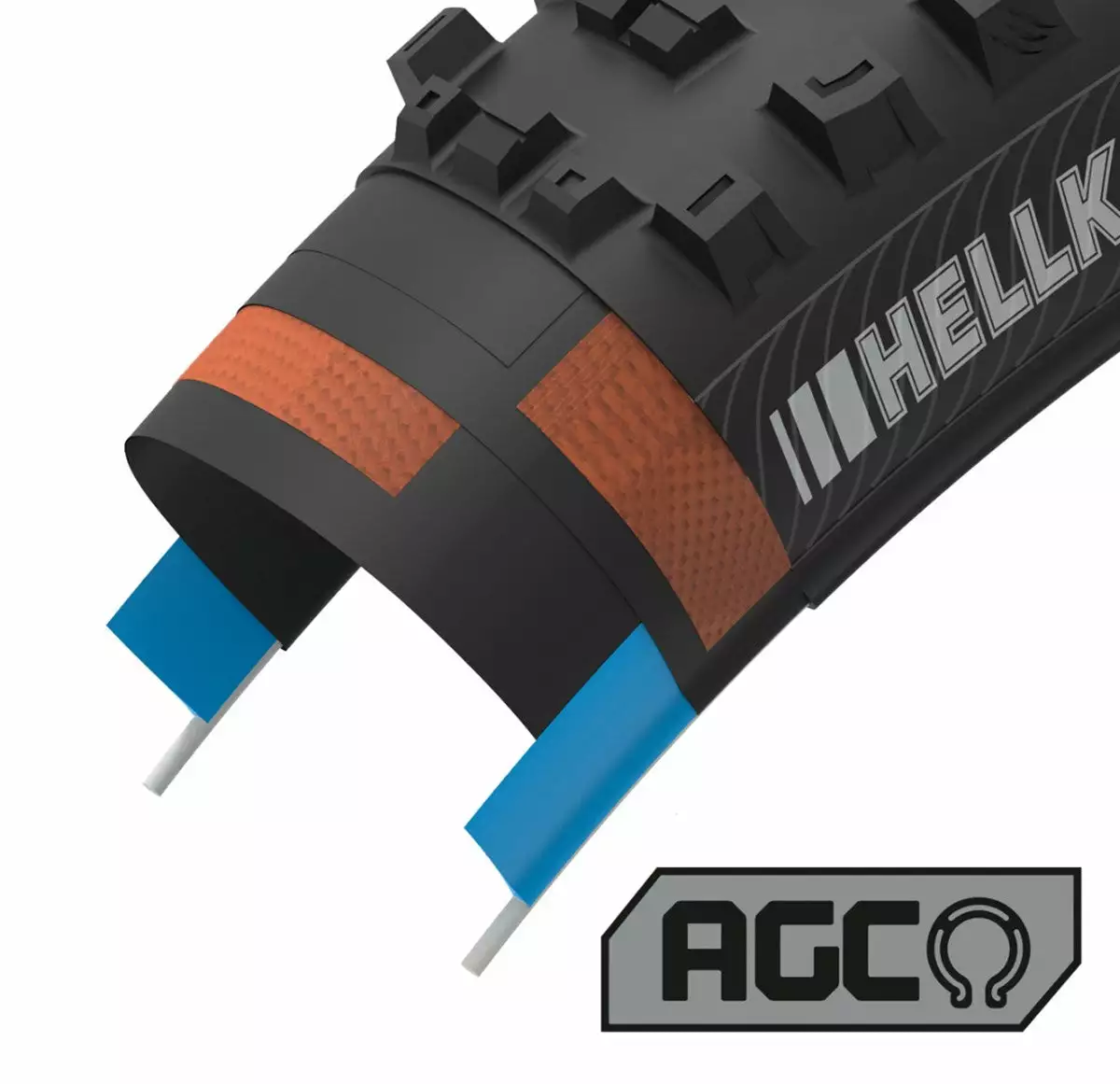 The new Advanced Enduro Casing fills the gap between the burly Advanced Gravity Casing (AGC) and the weight-optimized Advanced Trail Casing (ATC). Using the same 3-piece aramid inserts as the AGC casing, AEC omits the apex at the bead: for the same high level of puncture and cut resistance but without the added weight. A dual layer compound provides the same reliable grip found on the AGC casing.