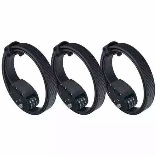 OTTOLOCK Cinch Combination Lock 3-Pack 18″/30″/60″ Black. 3 resettable combination wheels. Aluminum head. 18 mm wide band. Multiple high temper steel and Kevlar layers.