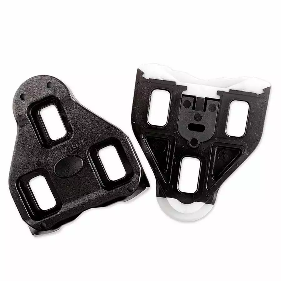 Look Delta Road Pedal Cleats. Possible disengagement equally from both side for more safety. New Teflon compound facilitates the clipping and releasing, black set offer no floating, red set offered floatting. Compatible with Peloton bikes.