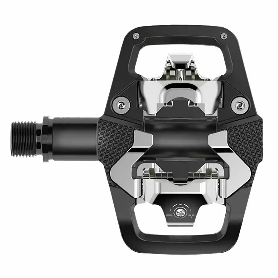 Look X-Track En-Rage + Plusย Mountain Pedals. Body material made of forged aluminum. Spindle Material: Chromoly + Ajustable pins for better grip. Weight: 453g / pair. Big surface area with 664mmยฒ. SPD Compatible.