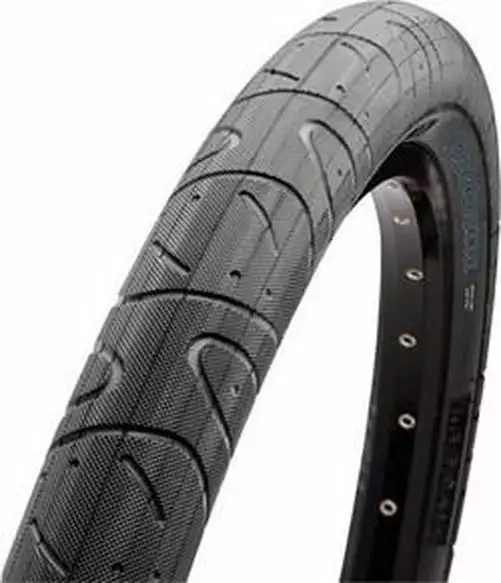 The Maxxis Hook worm Tire 29er is the original urban assault tire, designed to take the abuses of the most aggressive street riders. Huge air-volume softens the drops, while the inverted tread design makes rolling resistance minimal. Bead-to-bead tread provides durability and traction whether you’re dropping staircases, grinding rails or riding in your local skatepark.
