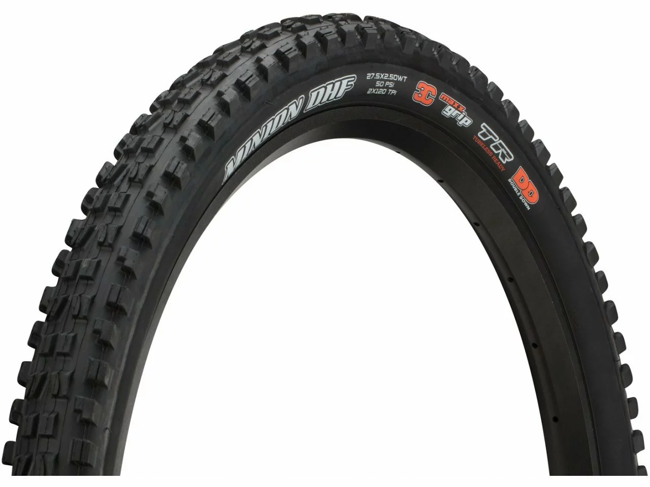 The maxxis minion DHF offers excellent cornering traction. Wide side knobs provide more support and better cornering. Center tread features ramped knobs to improve acceleration. Sipes in tread create a smooth transition when cornering. Paddle-like center tread knobs dig in under hard braking. The Minion DHF is a front-specific tire.