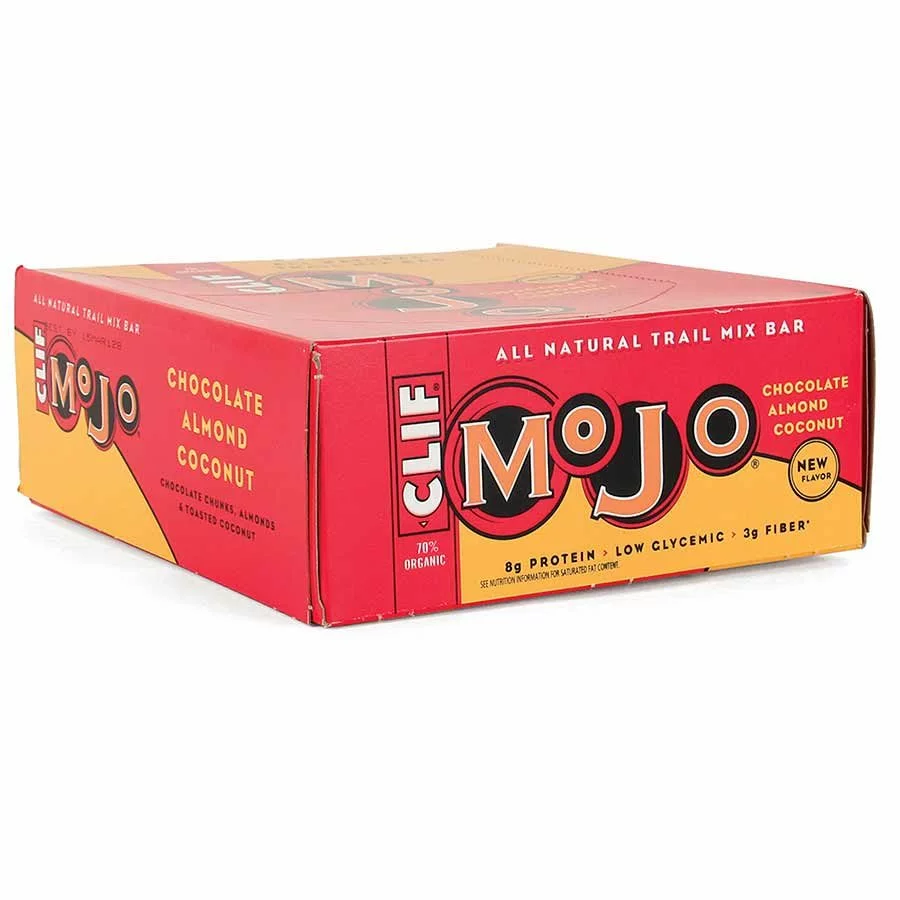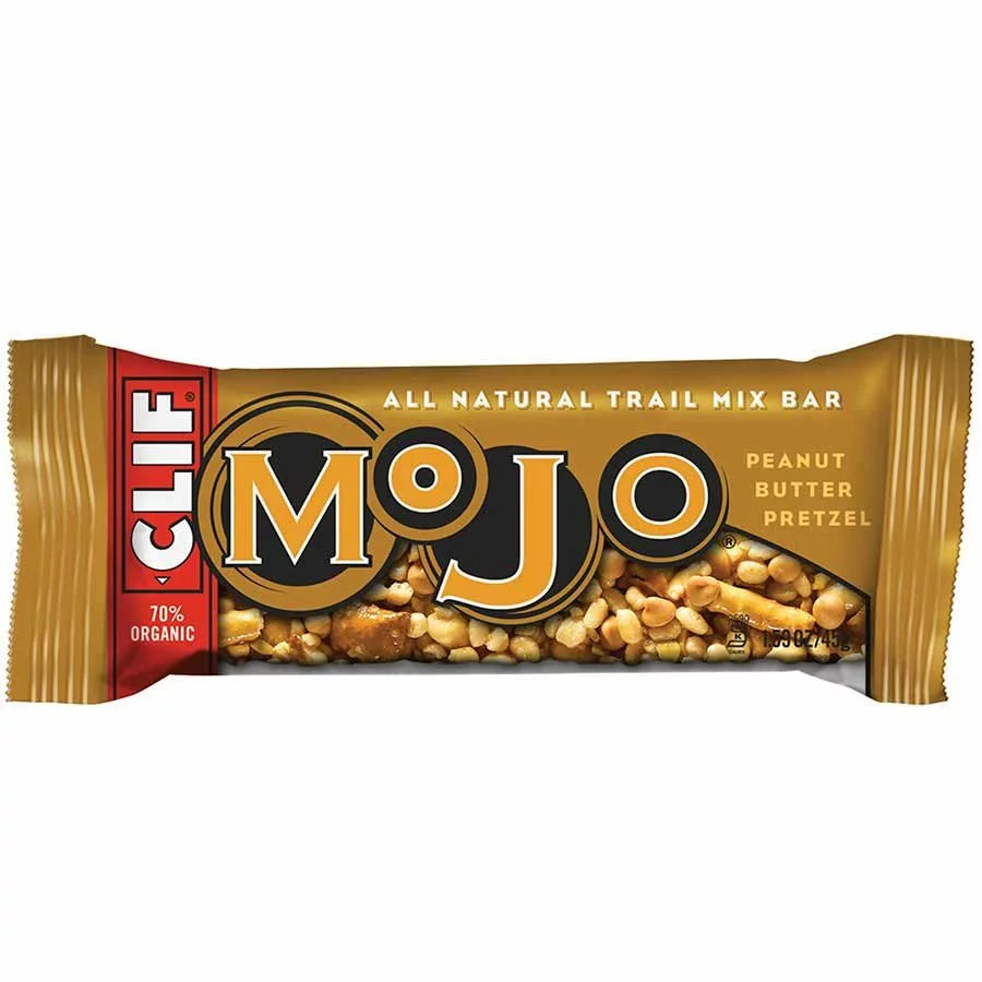 Clif Bar Organic Mojo Bars Box of 12. The crunchy, nutty, all-natural snack-in-a-bar you’ve been waiting for. For people on the move who want something salty when sweet won’t cut it. Filled with roasted nuts, organic pretzel bits, and other tasty morsels.