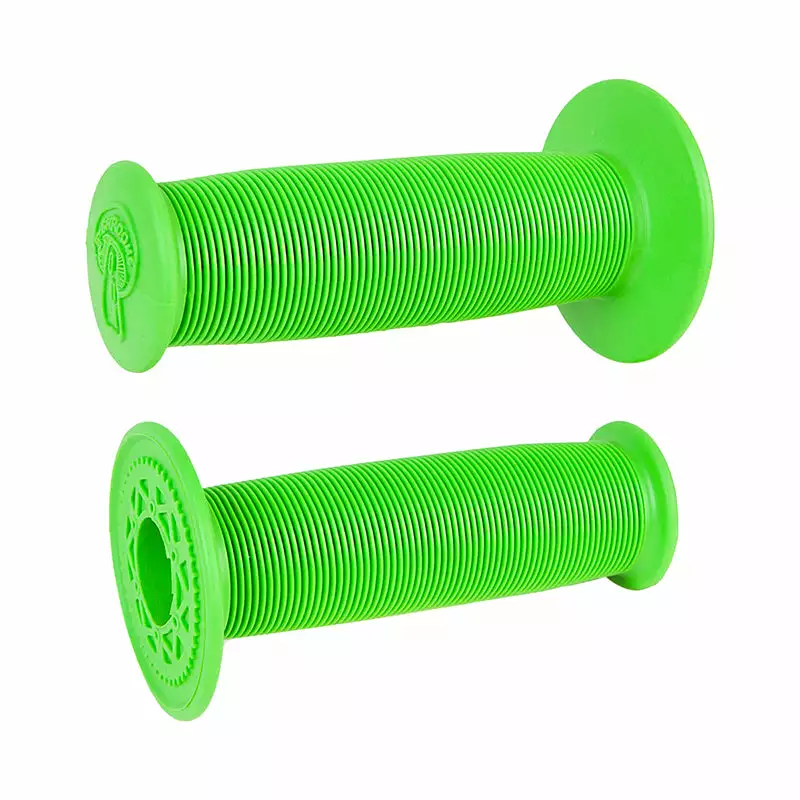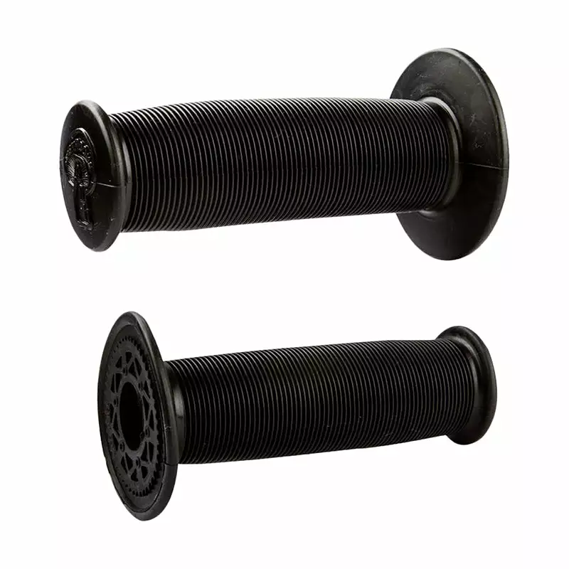 Odi Mushroom Bmx Grips. These original vintage Mushroom Grips feature the same ergonomic ribbed design as they did when we sold them 25 years ago. The collapisble rib pattern provides execptional comfort and helps reduce arm fatigue. Closed end with ODI mushroom logo