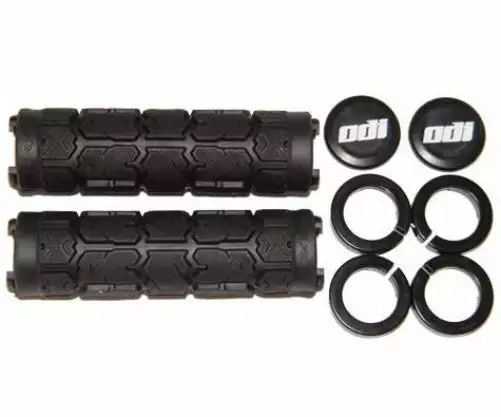 The ODI Rogue Lock-On Grips w/ Clamps features 100% slip-free performance. A rugged tread pattern combines maximum traction with the ultimate in shock absorption, for a smooth ride over the roughest of terrain. The strategically placed grooves of the ODI Rogue Grips channel away water for positive control in all weather conditions. The ODI Lock Jaw Clamps keep your grips in place eliminating grip slip. Includes 1 pair Odi Rouge Grips w/ End Caps & Lock On Clamps w/Bolts. (For 1 Bike)