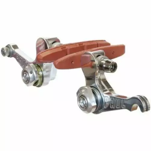 Paul Components Neo-Retro Cantilever Brakes Caliper. Machined from lightweight 6061 aluminum arms. Anodized finsh. Black or silver anodized color. T-shaped cross section prevents brakes from flexing too much under load. Brake pads mount to slots in the arms that allow for vertical positioning. Toe-in and angle can be fine-tuned thanks to the spherical washers. Long arms give lots of mechanical advantage and supreme mud clearance.