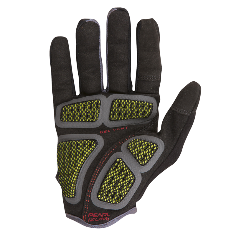 Pearl Izumi PRO Gel Vent Full Finger Glove. Stay cool and comfortable on hot days with the padded PRO Gel Vent Glove. The Patented Direct Vent palm design with ventilated gel padding, plus mesh fabric on the back of the hand, work together to keep your hands dry. Seams are minimized under your hands by bonding the padding onto the palm for maximum comfort and a chafe-free fit. Conductive synthetic leather on the index finger and thumb are touch screen friendly, so you can check your smartphone without pulling your gloves off.