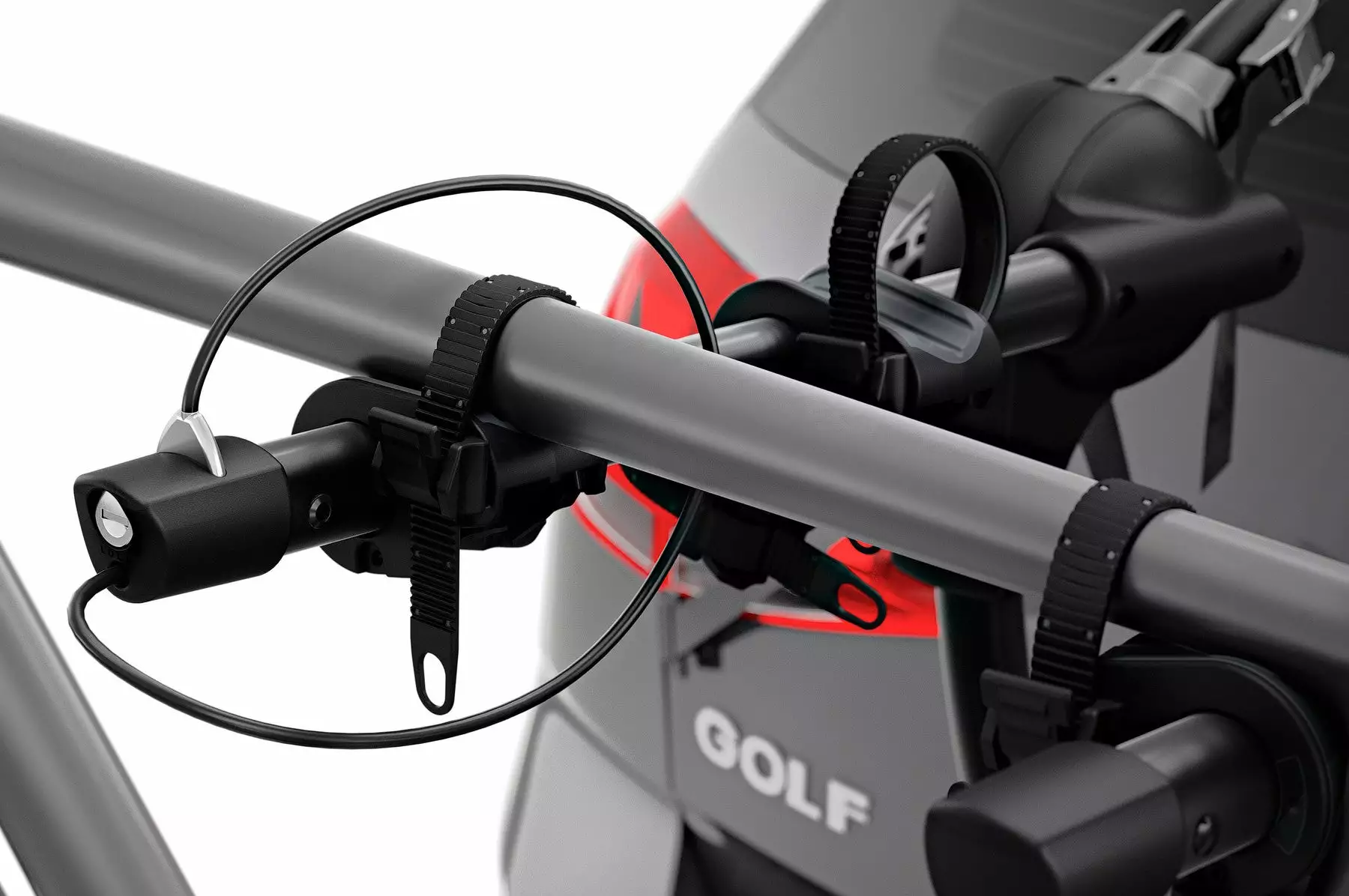 Lockable rack-to-vehicle โ Adapter/s required: Thule Passive Lock Strap