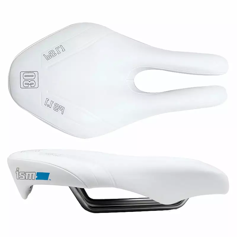 The ISM PS 1.1 is the ideal time trial or triathlon saddle. Similar in design to the PS 1.0, it features the same sloped front arms, but slightly thicker 30-series padding, and budget-friendly chromoly rails. Similar to the other PS saddles, the PS 1.1 features an upward slope at the rear โ providing superb hip support when your body is rotated forward in the aero position, or an aggressive road riding position. This tends to be preferred by athletes that donโt move around on the seat excessively while riding. It is also a top choice for triathletes and time trialists who ride in the aerobars, or for flat courses in which the athlete likes to โsettle inโ to one position and go. Like all ISM saddles, the PS 1.1 is nose-less and designed to remove pressure from soft tissue, ensuring maximum blood flow, no genital numbness, and a healthier, more enjoyable ride.