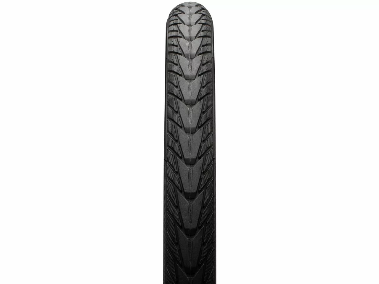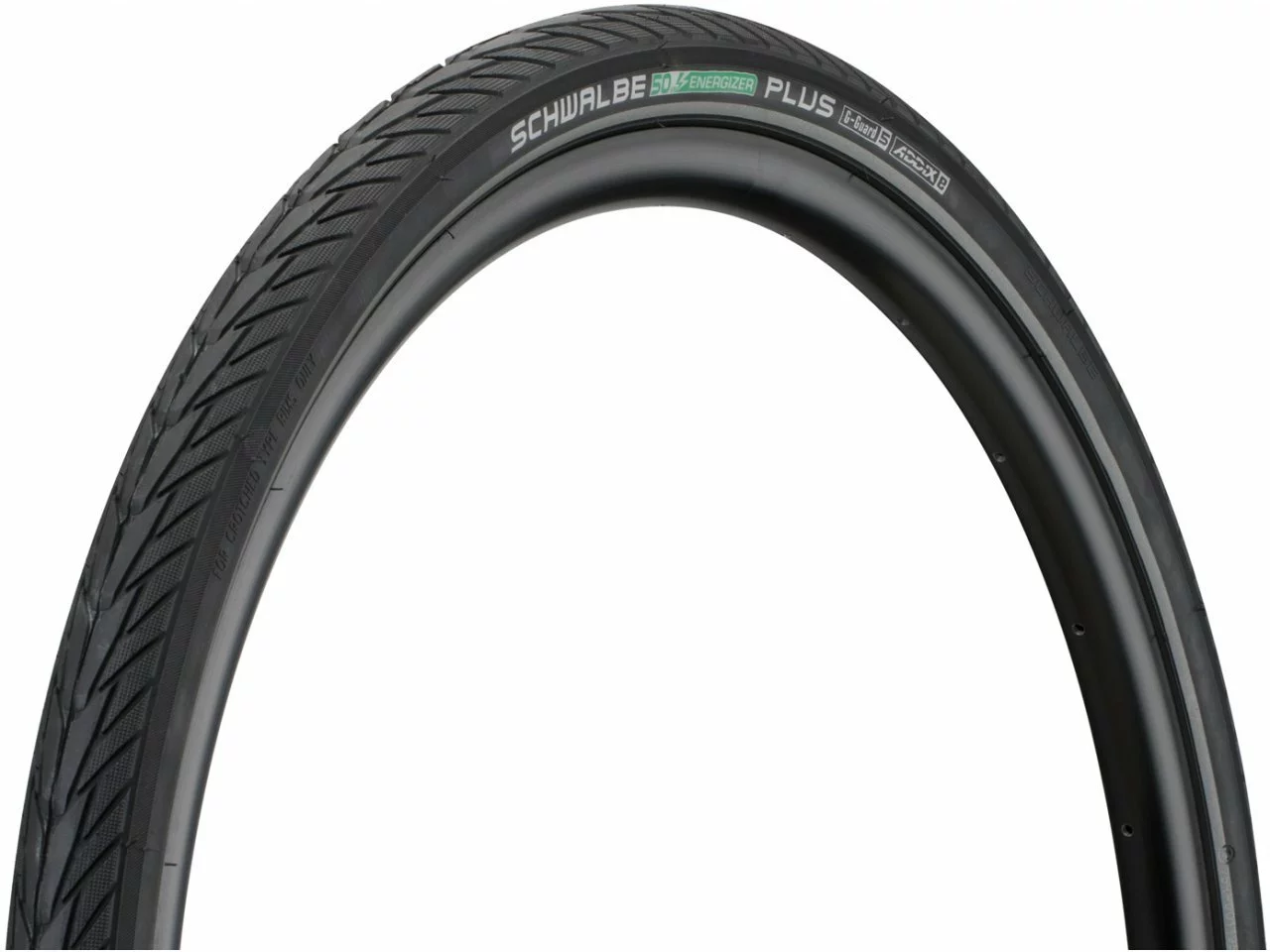 The Schwalbe Energizer Plus Addix-E Clincher Tire 700c has a state-of-the-art, dynamic touring profile with a smooth middle section and non-slip side surfaces. It rolls easily on the road and grips, even on unpaved surfaces. Addix E-Compound specially designed for e-use for maximum durability, low rolling resistance and exceptional grip even at high speeds. The proven, 3 mm thick GreenGuardยฎ guarantees reliable puncture protection in everyday touring.