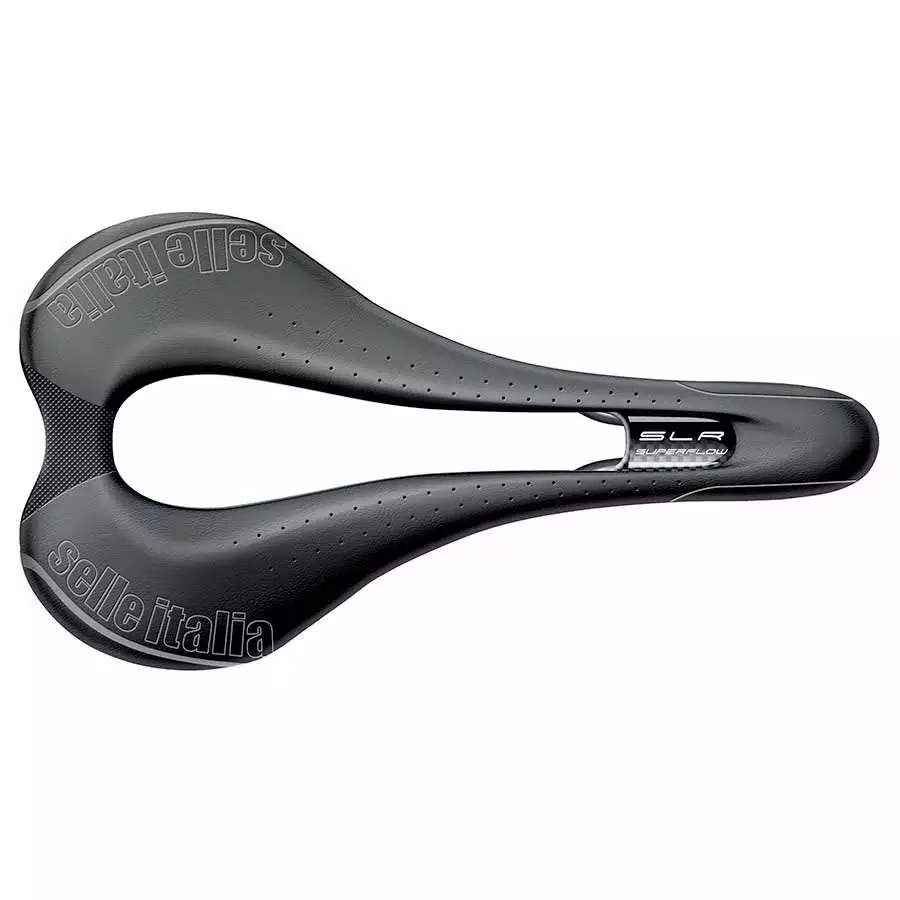 Selle Italia SLR Superflow 145 Titanium saddle features Shock Absorber between the shell and rails reduce road shock and vibrations. 30% Carbon composite shell Fibra-Tek microfiber cover Ti316 rails L3 fit.