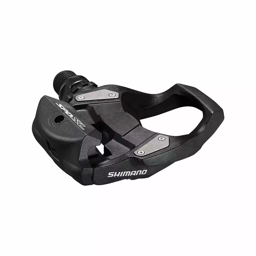 The Shimano PD-RS500 SPD SL pedals w/SM-SH11 cleats are characterized by a simple aesthetics and high functionality. The larger entry area and the lighter spring tension make it easier for beginners to ride with these pedals.