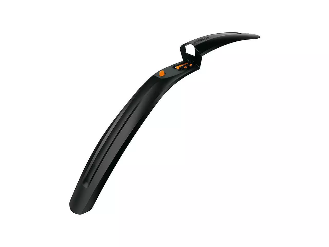 SKS ShockBoard XL Front Clip-On Fender 27.5 / 29er. Can handle large wheel diameters through a raised splash guard. Features quick-release fasteners for the steerer tube and the seat post