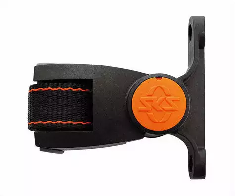 The SKS Water Bottle Cage Adapter can be attached to the seat post, the stem or about anywhere with this adjustable, well-proven SKS quick-release mount system. The SKS Water Bottle Cage Adapter features a angle adjustment that ensures that the bottle is always optimally aligned.